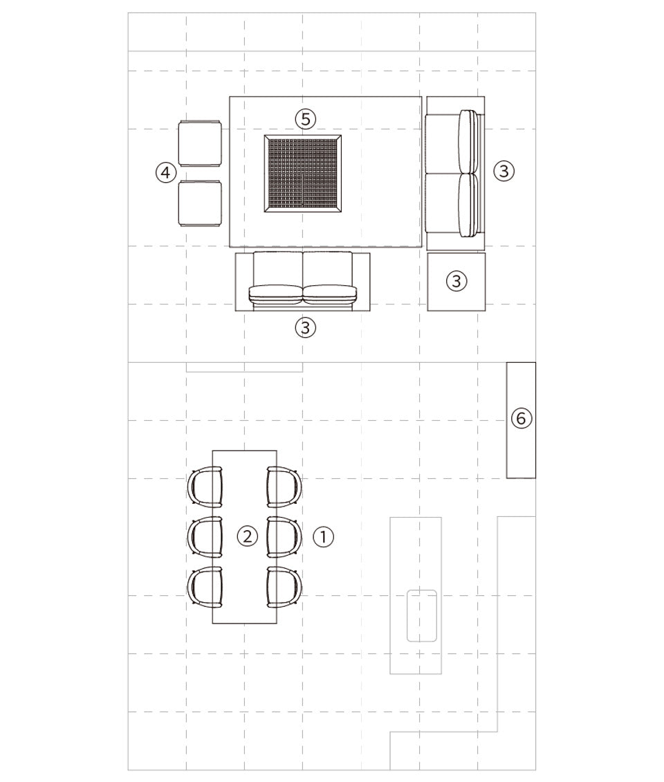 フォーマルな雰囲気の落ち着いたリビングダイニング。天然木ならではの個性ある木目や形状を活かしたダイニングテーブル<一本技>は、日々の暮らしに豊かさを与えます。一点物として愛でながら時々オイルメンテナンスを行い、丁寧な暮らしを充実させます。クッション性のある背に包まれるような座り心地の背張チェアー<WING LUX LD>は、ゆったりとした心地良い空間をつくり出します。