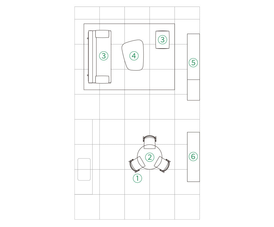 カジュアルな雰囲気で、カフェのように気軽に過ごせるリビングダイニングです。ラウンドテーブル<KOTAN>は脚まわりがスッキリとしており、シンプルで繊細なデザイン。限られたスペースでコンパクトなサイズ感でもこだわりのインテリアを十分に表現できます。淡く優しい色使いの木製家具に、金属脚のテーブルやシルバーの照明など異素材を取り入れて上質さをプラスします。