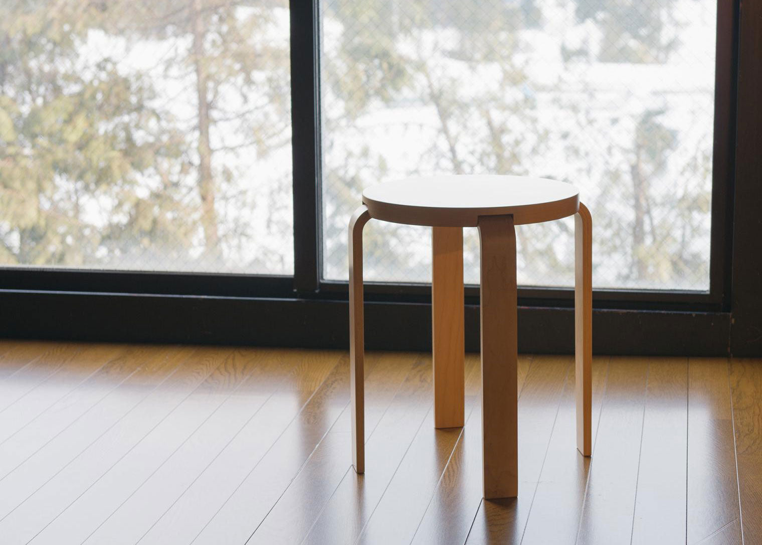 丸い座板と4本の脚からなる、極めてシンプルなスツールです。その接合部は、薄い座板から脚が出ているかのような斬新な収まり。座裏に貫などの構造体がなく、5脚スタッキングしてもコンパクトに美しくまとまります。ホームユースはもちろん公共空間にも最適です。