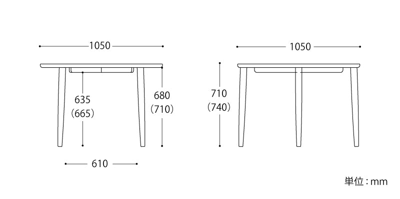 直径1050 高710(H:740) 天下680(H:710) 裏桟下635(H:665) 脚内610(mm)