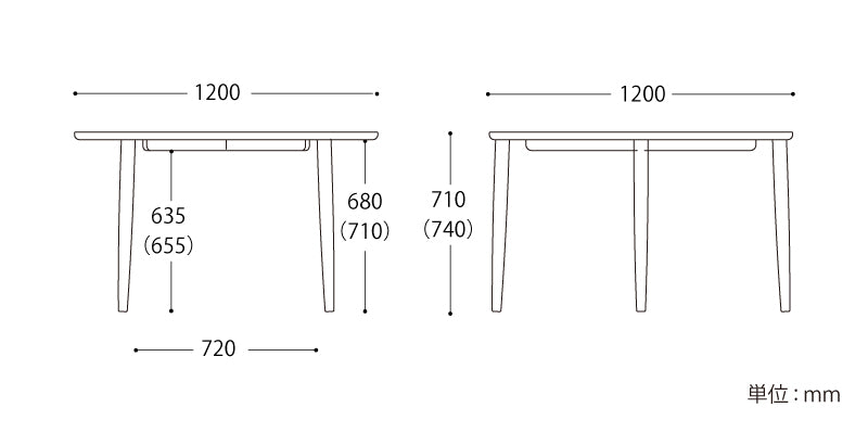 直径1200 高710(H:740) 天下680(H:710) 裏桟下635(H:665) 脚内720(mm)