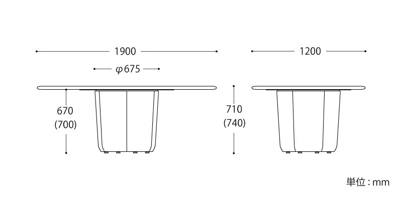 巾1900mm 奥1200mm 高710mm(H:740mm)