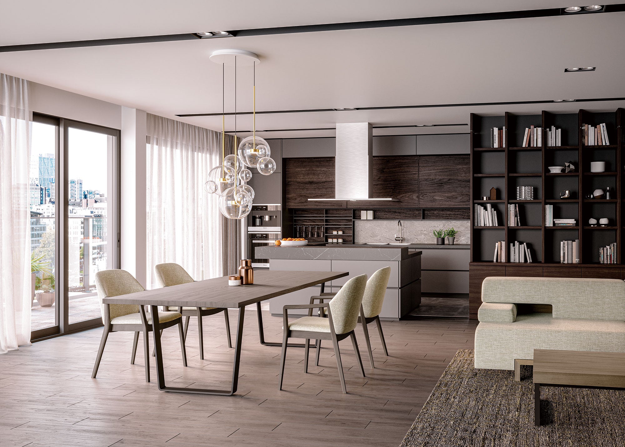 食事に求められるフォーマル感と安楽性を両立させた椅子です。背と座のクッション性にこだわり、ふっくらと底付き感なく仕上げました。六角形の広く高さのある背と、エッジを効かせたシャープなアーム部が体を包むように受け止め、時間をかけて楽しむディナーや語らいをサポートします。