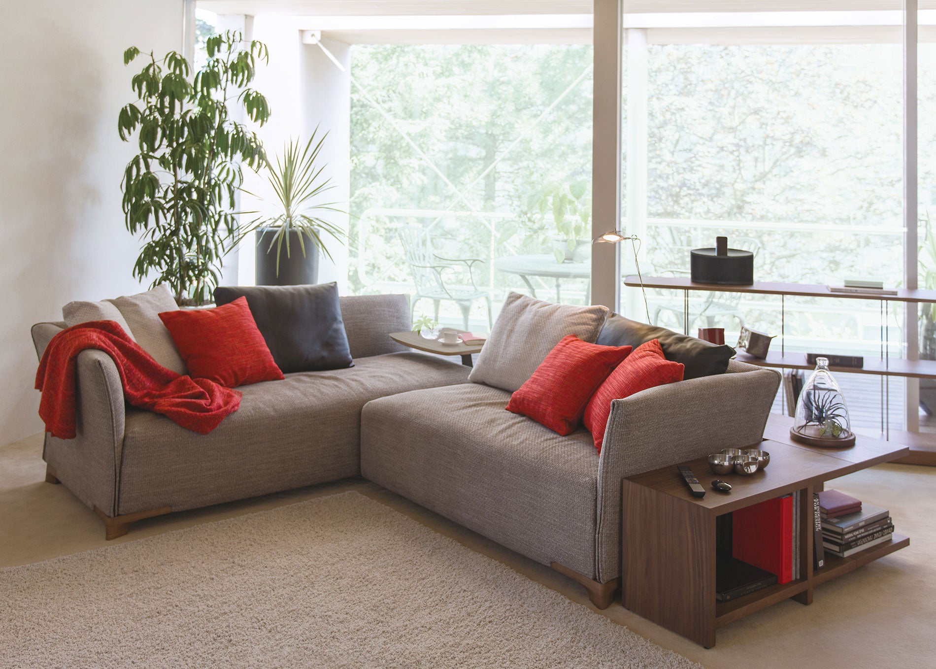 腰掛けるというより、体を委ねたくなる。そんな包容力のあるソファーを中心に、ボックスなどさまざまなユニットを組み合わせて「自分の居場所」づくりができるシリーズです。デザイナーの吉野利幸氏は、内部構造から張地まで吟味することでソファーにこれまでにない"居心地"を持たせる一方、そこで長い時間過ごすためのさまざまなアイテムを提案。照明や音楽、本などを適切な距離感で配置するシェルフやテーブルを揃え、トータルなくつろぎの形をデザインしました。