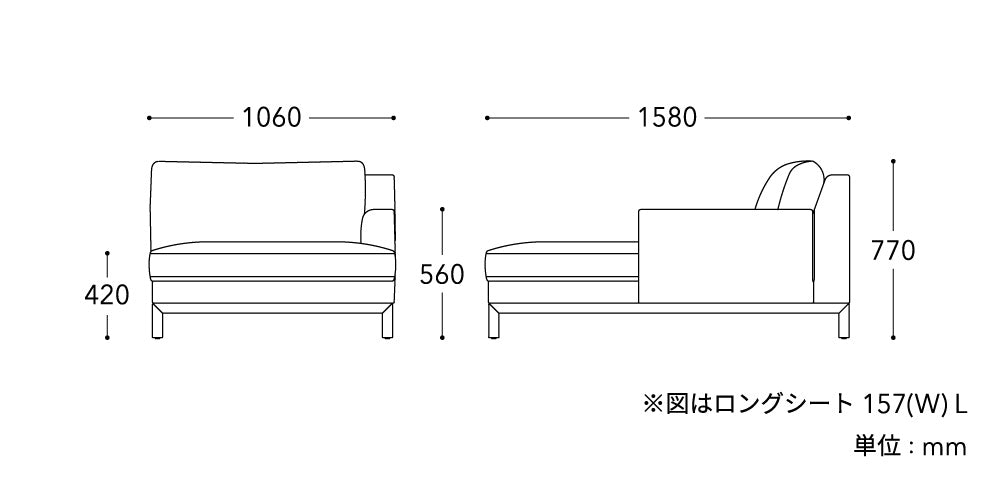 巾1060 奥1580 高770 座高420 肘高560(mm)
