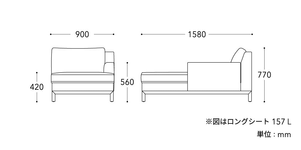 巾900 奥1580 高770 座高420 肘高560(mm)