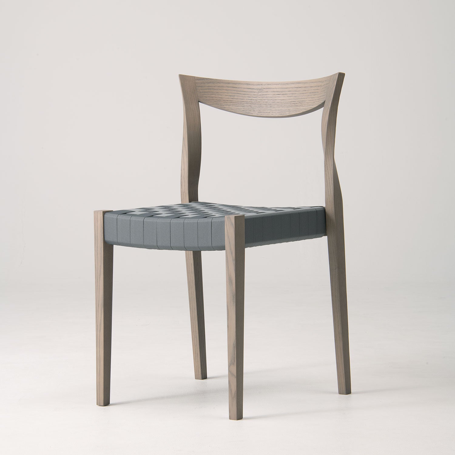 「スピン」という名の通り、背から脚に繋がる“ねじり” が特長の、軽快なスタッキングチェアーです。「国際家具デザインコンペティション旭川[IFDA]1999」の応募作品から生まれた椅子を、掛け心地や強度を見直して復刻しました。座面は、オリジナルのデザインを受け継ぐ、格子状の編み込みが美しいポリエステルテープ張りと、シンプルな仕上がりの布張り、革張りをご用意しました。