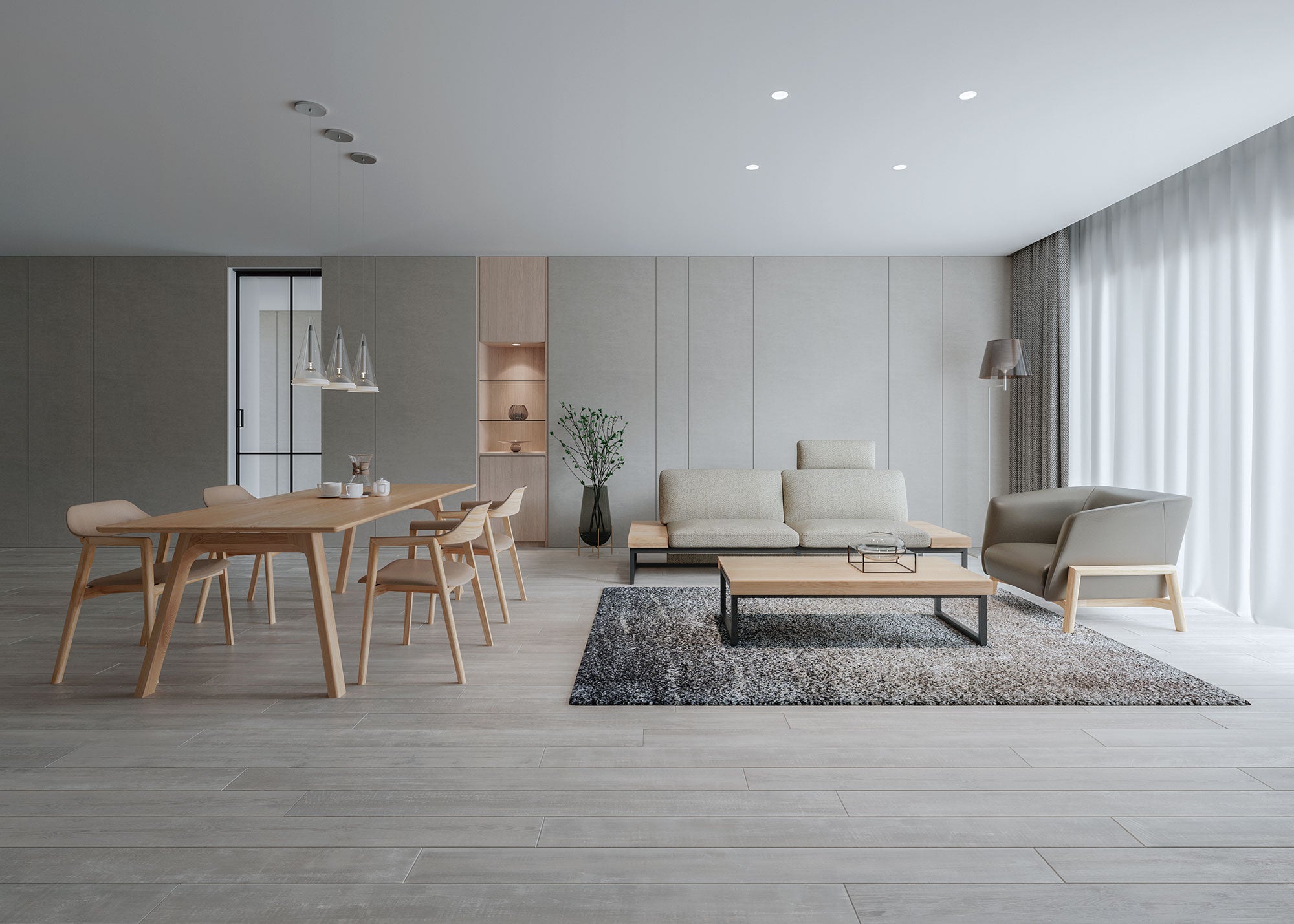 ドイツ人デザイナーのミヒャエル・シュナイダー氏が、「シャープ&ソフト」の理想的なバランスを追求した「テン」。背の張り分け方が選べる椅子は、その美しさと独特な弾力で腰掛ける人を魅了します。面形状にこだわった無垢テーブルは、脚部を持ち上げることなく天板を最大700mm伸長できるエクステンションタイプも用意しました。タモ材には地元北海道の木を使用しています。