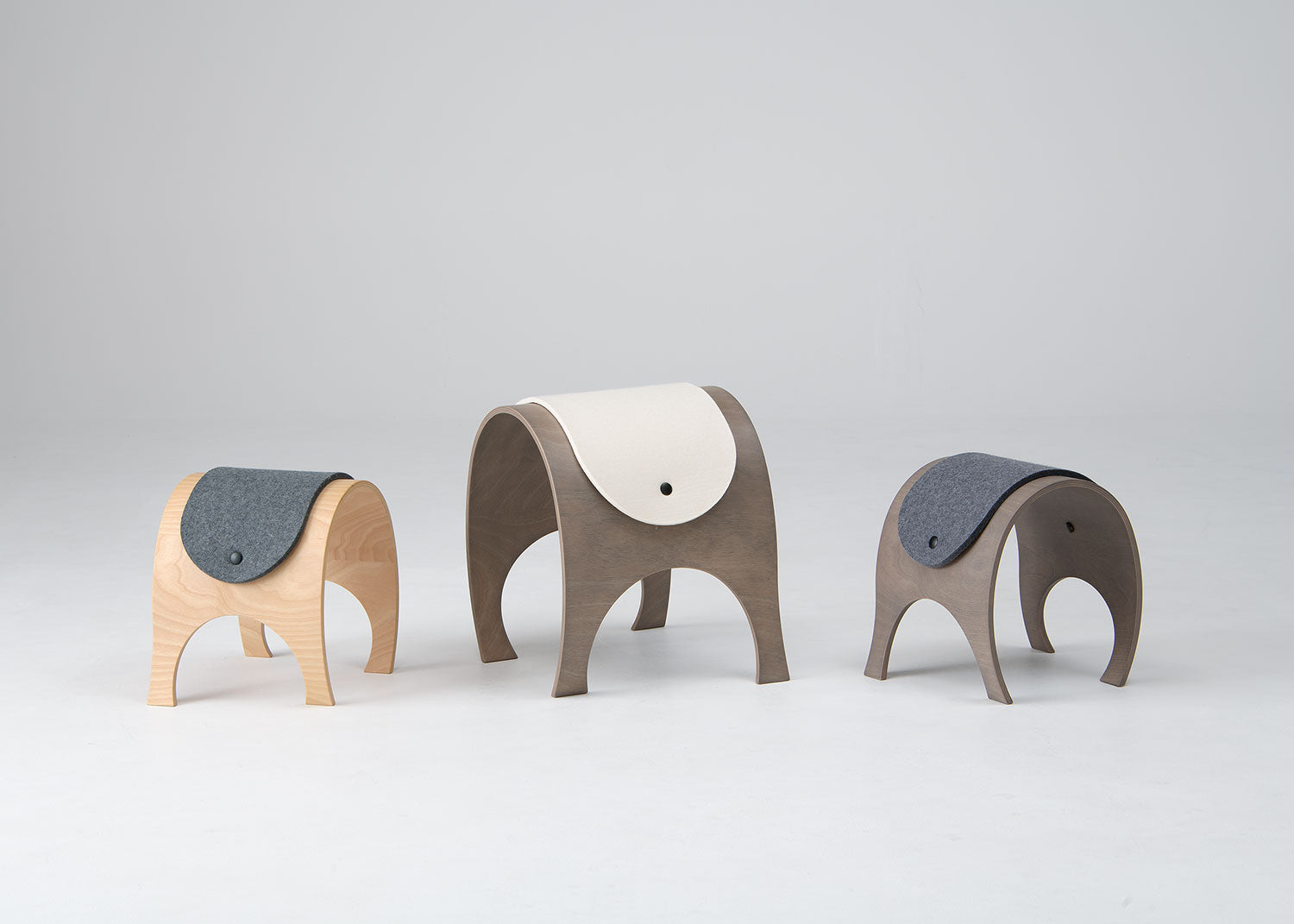 動物を思わせる愛嬌たっぷりのフォルムのスツールは、ドイツ人デザイナー、グンター・ケーニッヒ氏の遊び心が込められています。北海道産材の成型合板によるなめらかな曲面と軽快感が特長で、「国際家具デザインコンペティション旭川[IFDA]1996」の銀賞受賞作から生まれた製品を復刻。サイズは2種類あり、「小」は座高350mm とこども用の椅子としてもおすすめです。