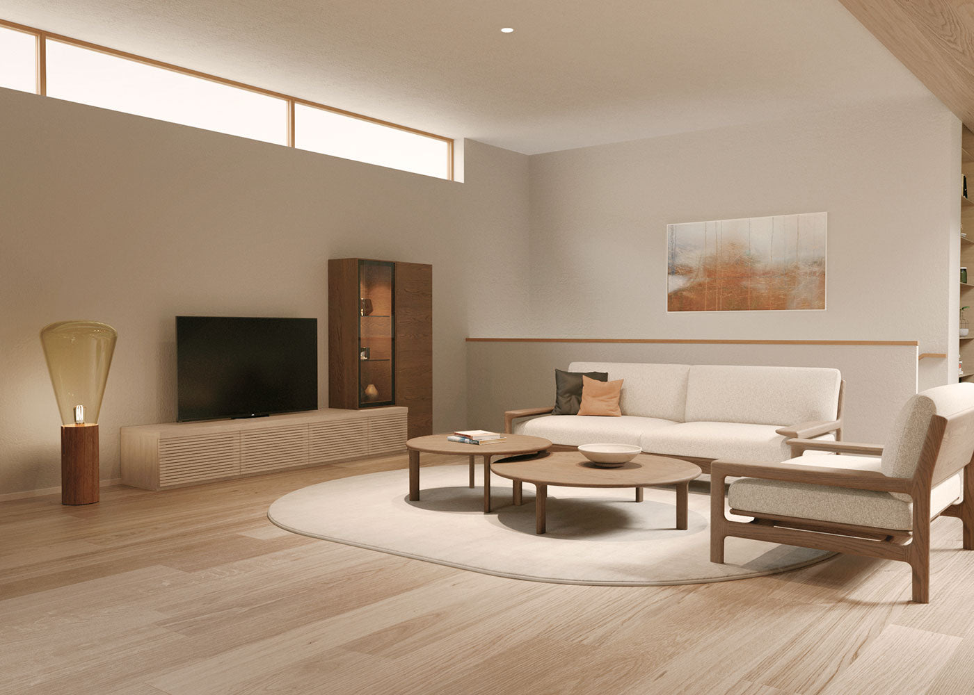 北海道の自然への敬いと感謝を込めて、「叙事詩」を意味するアイヌ語から名付けたYUKAR LUX[ユカラ ラックス]。北海道産ナラ材の魅力を、その造形美により引き出したリビングシリーズです。ソファーの独特なサイズ感と掛け心地、テーブルの木質感と機能性。曲線と曲面が紡ぎ出す究極の「バランス」が、自然な美しさに集約されました。