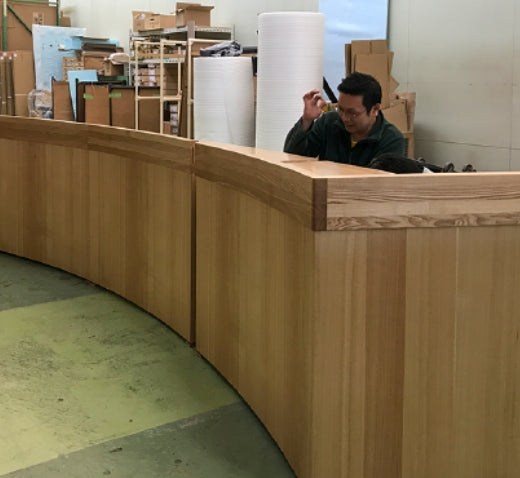 工場直結の強みと創業以来培ってきた木製家具製造のノウハウを最大限に活用し、最適な製造方法や施工方法をご提案。お客さまのご要望を叶える空間づくりをお手伝いいたします。