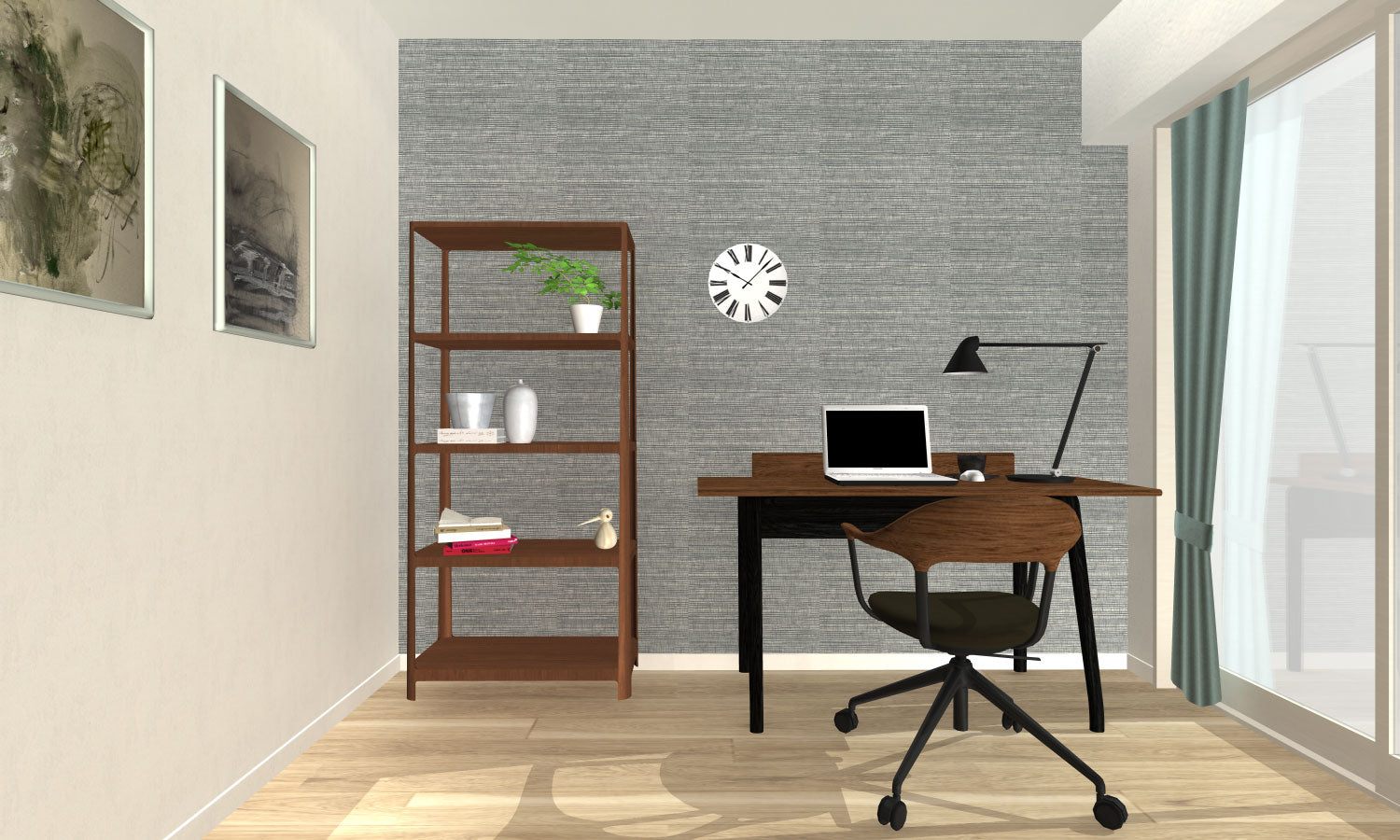 ワークスペースに配置した家具の木目は、ブラウンの配色でより木質感を感じられる空間にしました。