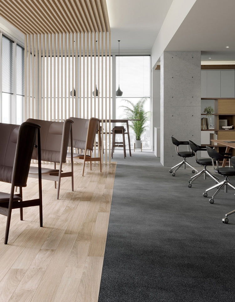 東京オープンオフィスでは、自然素材を生かした新作家具を取り入れ、その日の業務内容や気分によって最適なスペースを選んで働ける、社員が心身ともに活発になれる空間を目指しました。