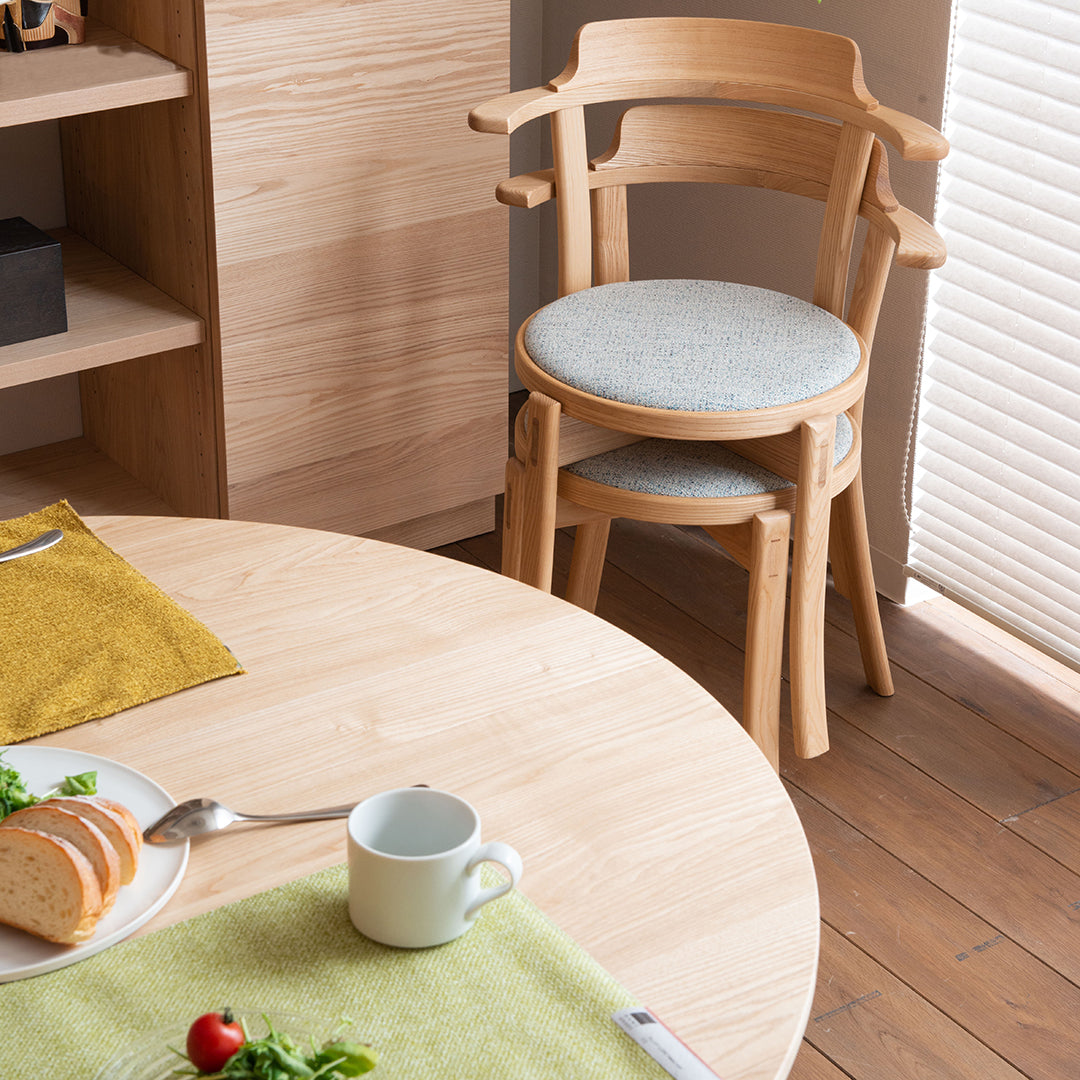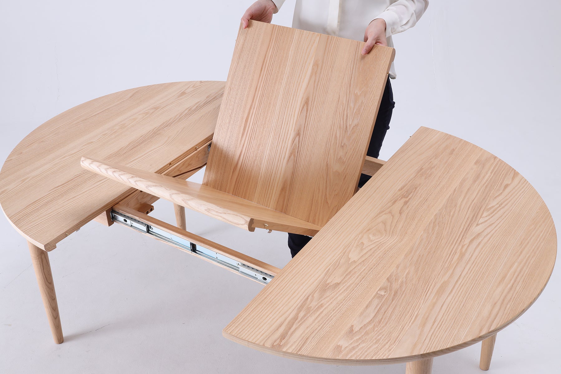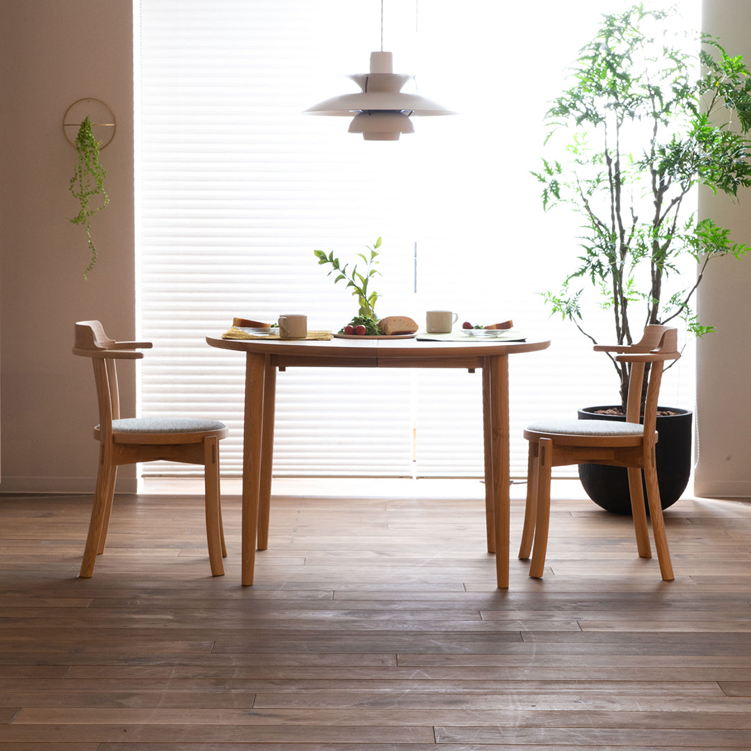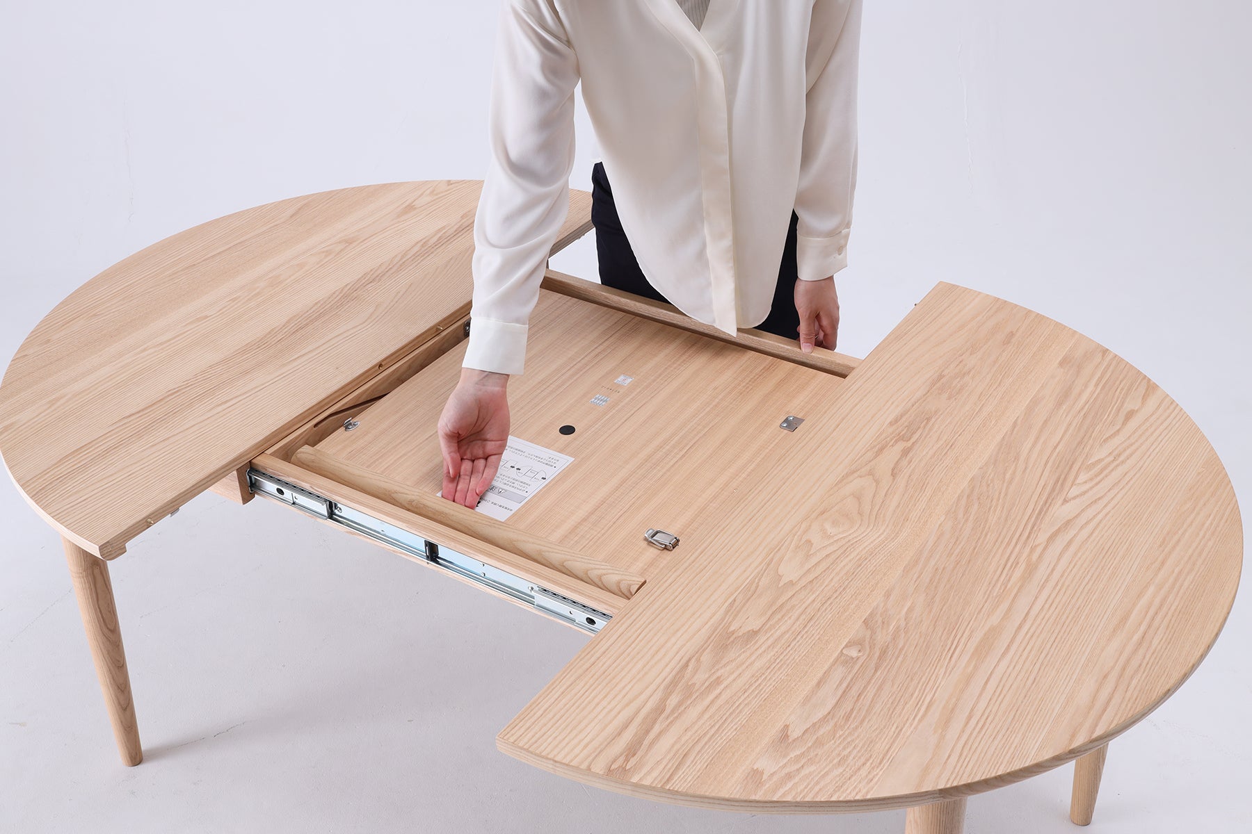 美しさと機能を兼ね備えたラウンド型のエクステンションテーブル「マム」。