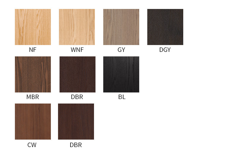 北海道ニレ、北海道タモ、北海道サクラ、北海道ナラの樹種は、NF・WNF・GY・DGY・MBR・DBR・BLの7色からお選びいただけます。