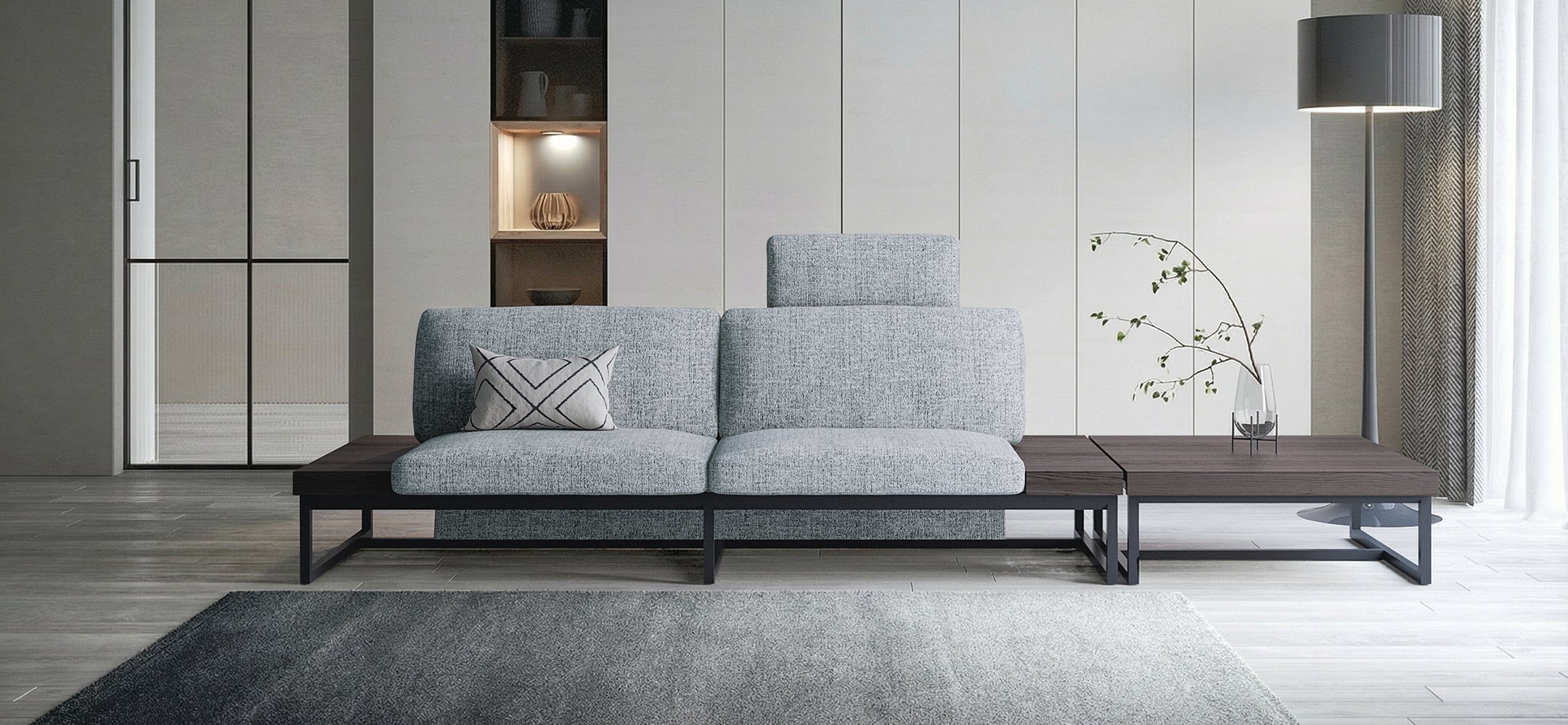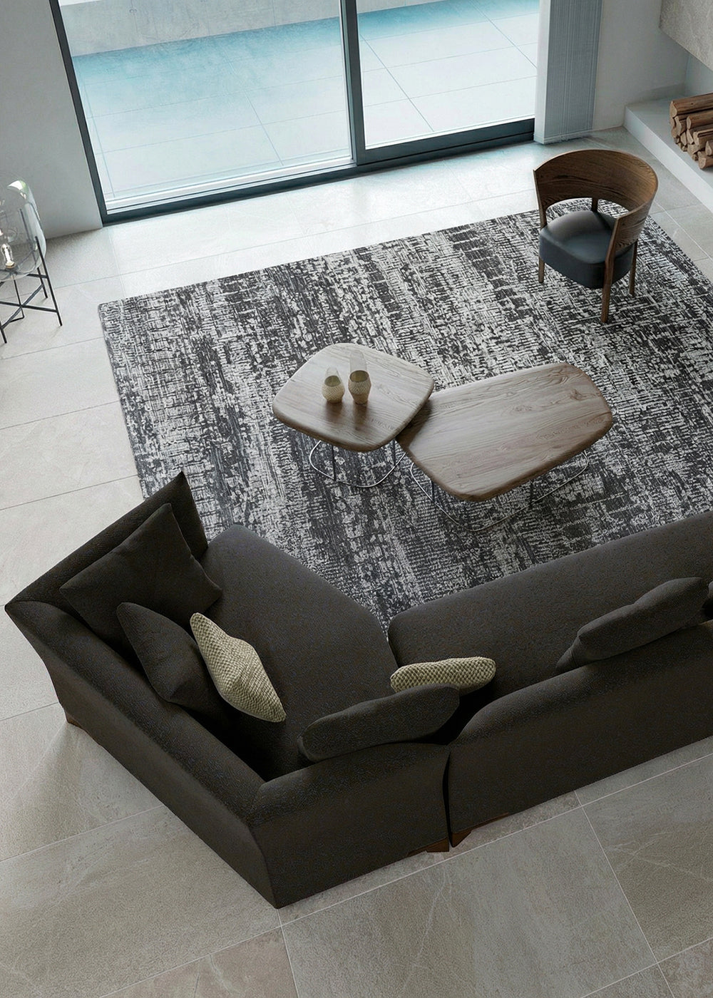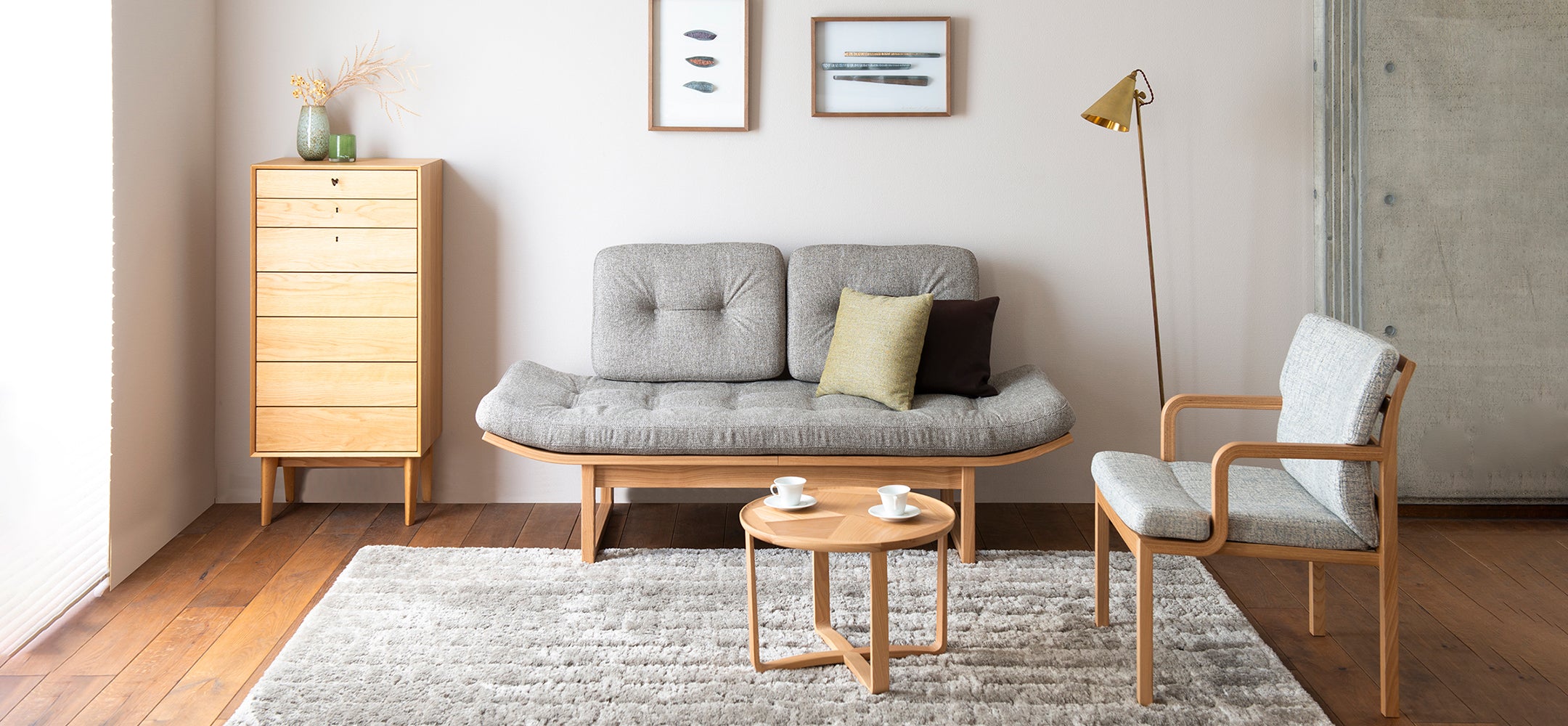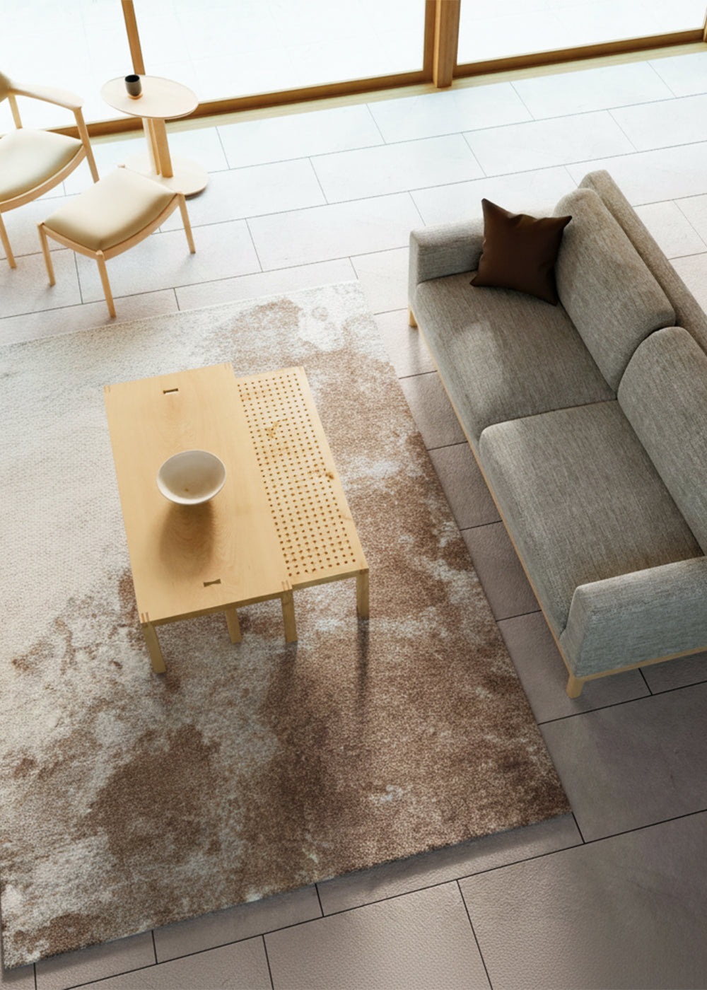 美しいニュートラルカラーと手触りの良いラグは空間を包み込み、