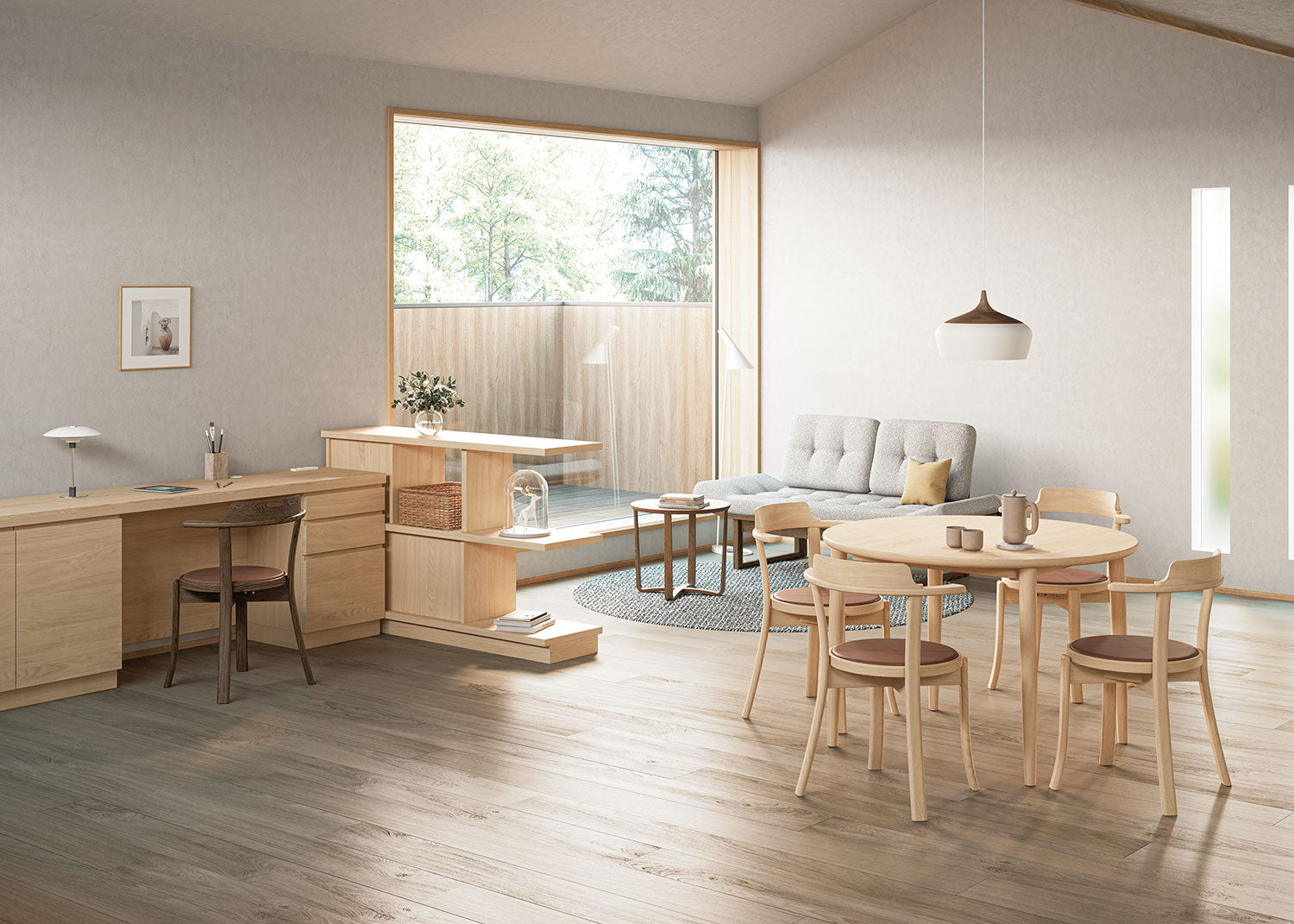 カンディハウスでは、木質感豊かな生活シーンを設け、照明やグリーン、アートにもこだわった、心地よいライフスタイルをご提案いたします。また、住宅はもちろん店舗やオフィスなど、インテリアのプランニングから設計、施工まで総合的な空間づくりをお手伝いいたします。