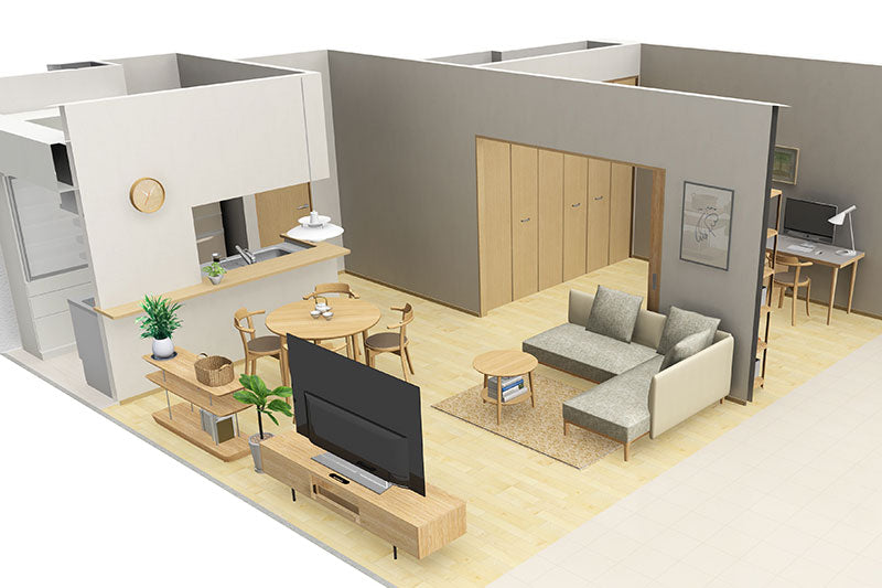 インテリアコーディネートご提案の際に、3Dを使ったプランニングを行うことが可能です。ご自宅のお部屋に配置したインテリアがイメージしやすくなります。ご希望の方はお申し込みフォームからご予約ください。