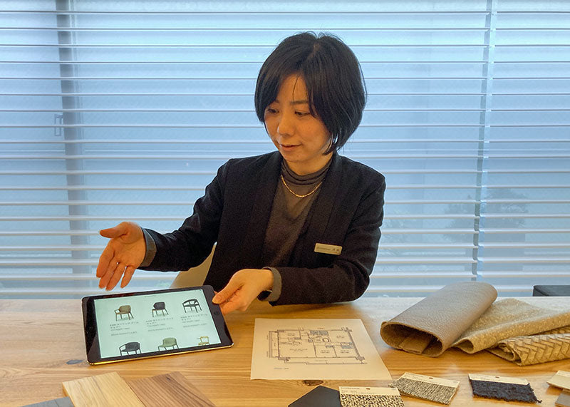 家具選びや素材選びのポイントをご紹介。店内にて実際の座り心地も体感いただけます。家具に合わせて、照明やラグ、グリーン、アート、カーテンなどもあわせてご検討いただけます。