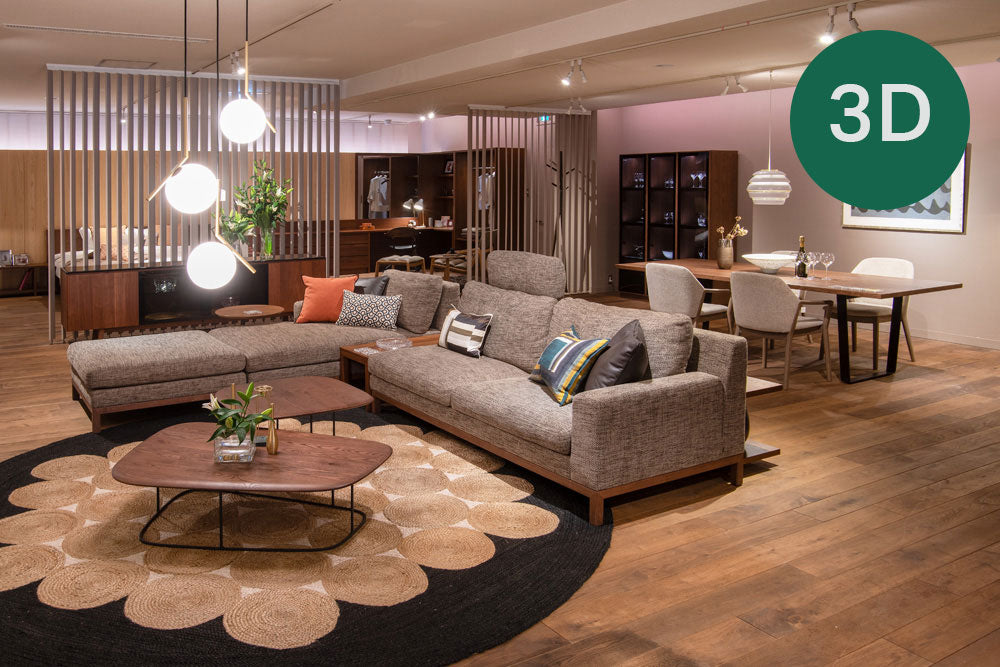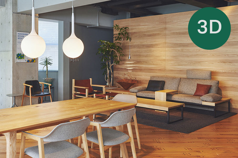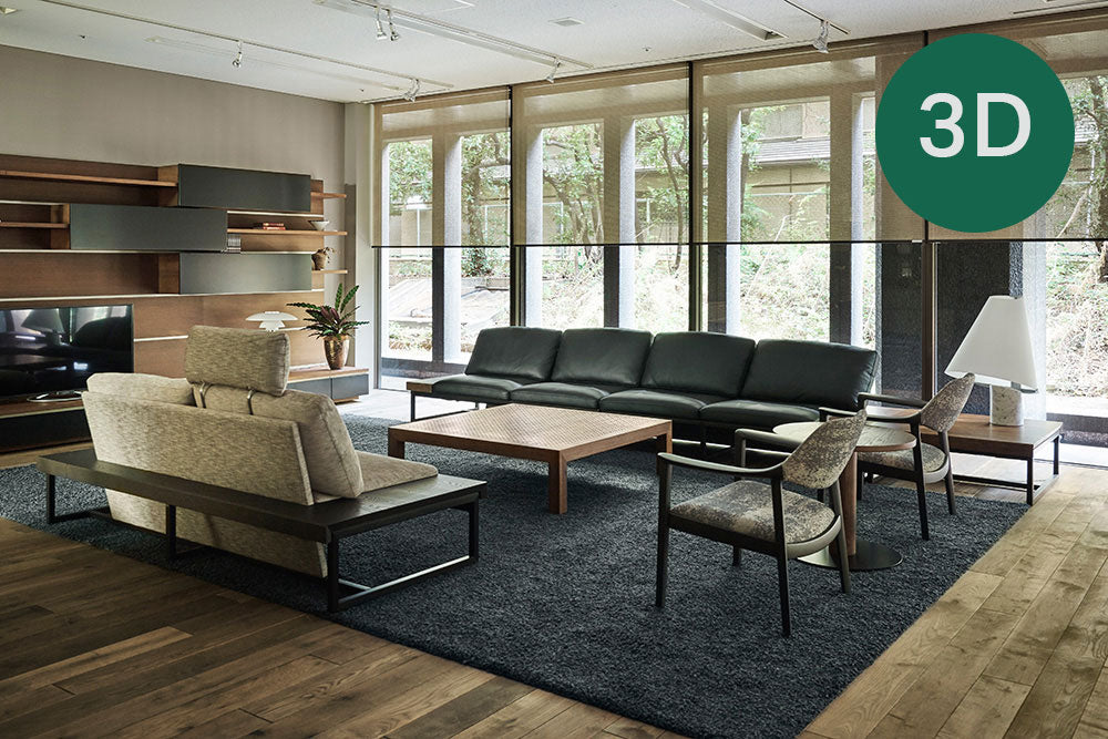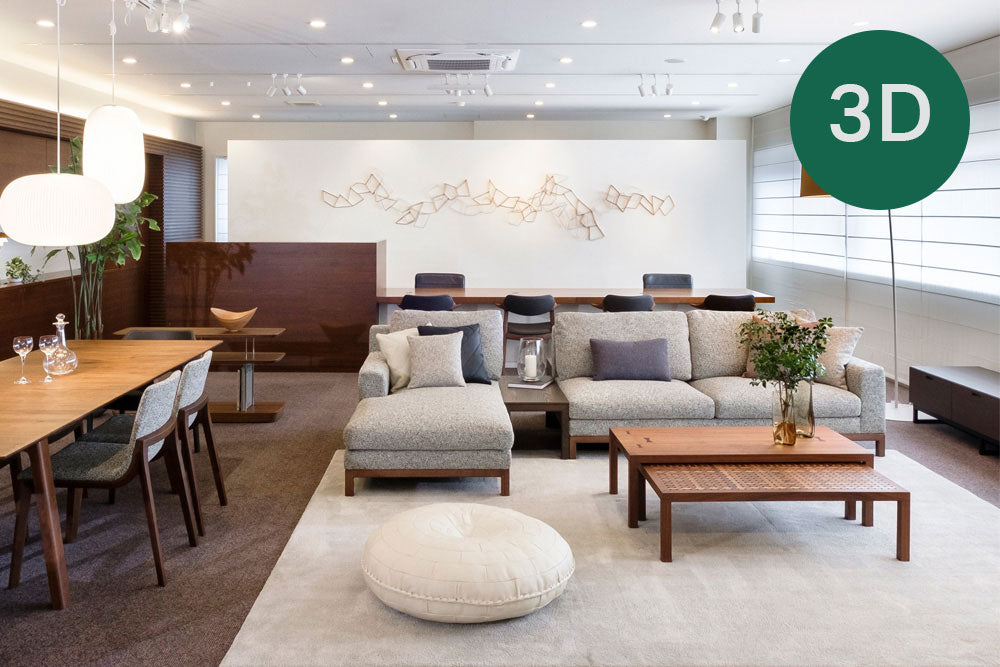 インテリアコーディネートご提案の際に、3Dを使ったプランニングを行うことが可能です。ご自宅のお部屋に配置したインテリアがイメージしやすくなります。ご希望の方はお申し込みフォームからご予約ください。