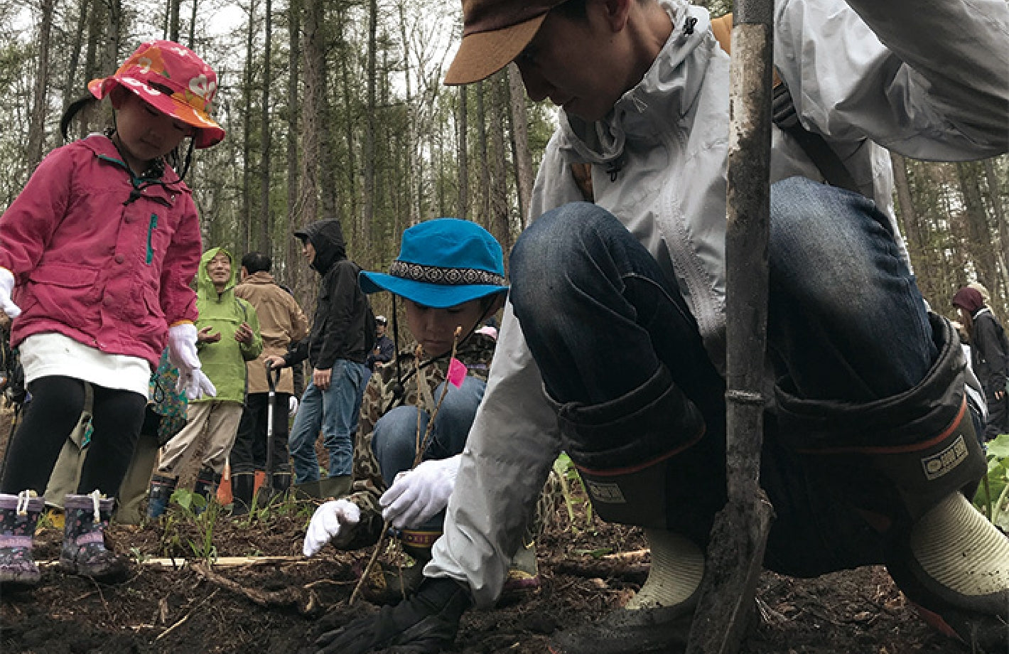 私たちのものづくりは、健やかな大地と森があって成り立ちます。カンディハウスが次の森を育てる活動として毎年行っている植樹は、20年以上続いています。これまで植えたミズナラの苗木は5万本を超えており、今後も永続的に行っていきます。