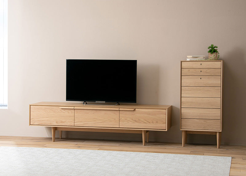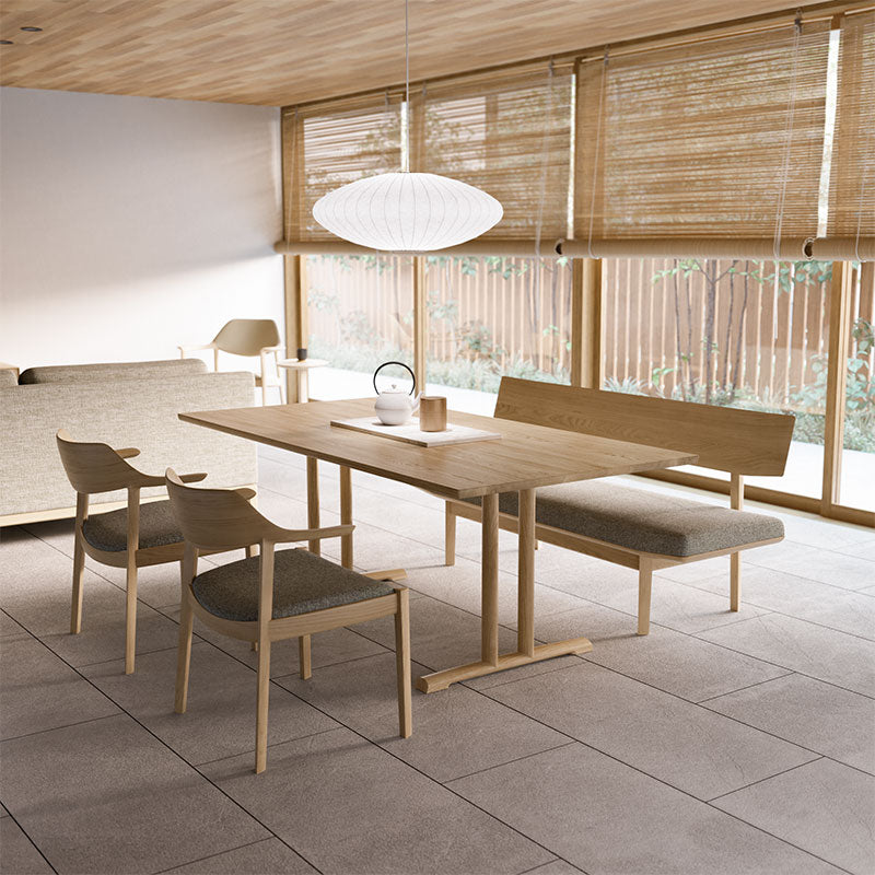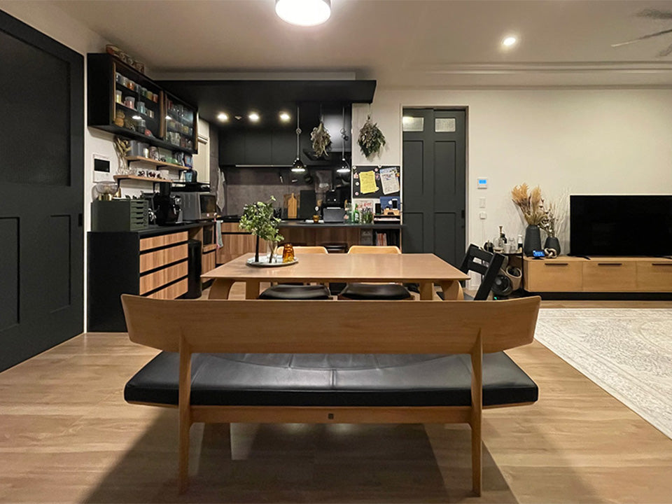 動きのある木目はナチュラルなフローリングと合わせても木質感が映えます。塗装色WNFの白味ある色や、GY色はグレイシュなフローリングにも馴染みます。ライトカラー系の張地でナチュラル感を出したり、カジュアルな雰囲気を演出することも可能です。