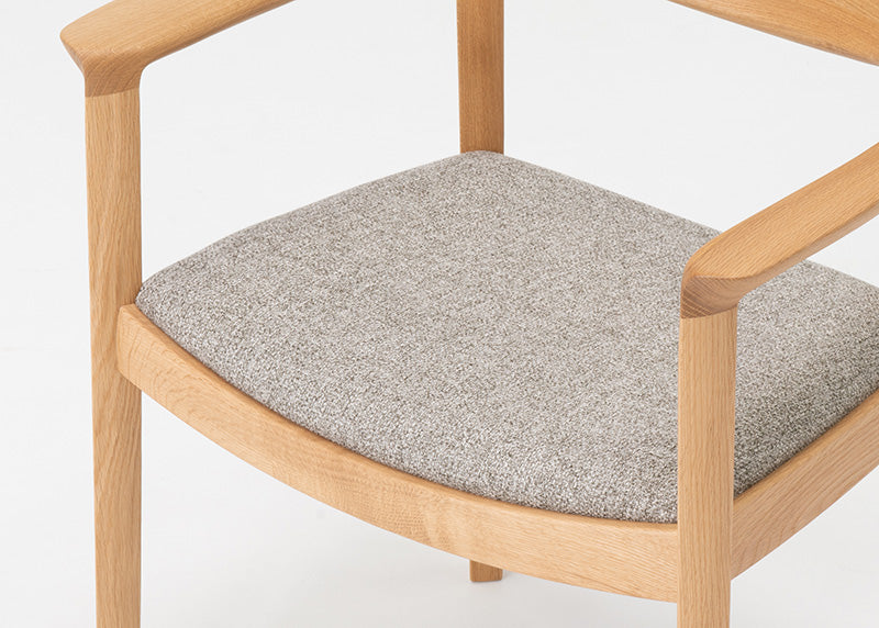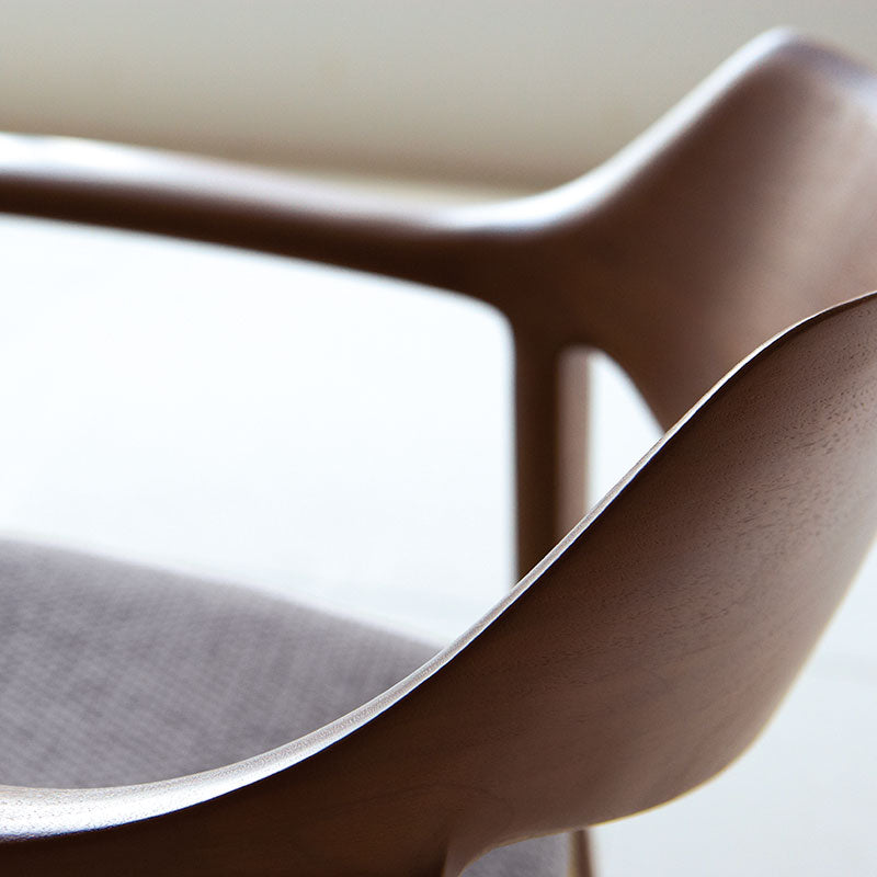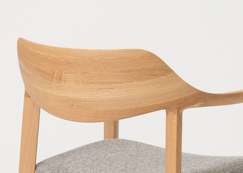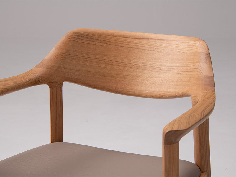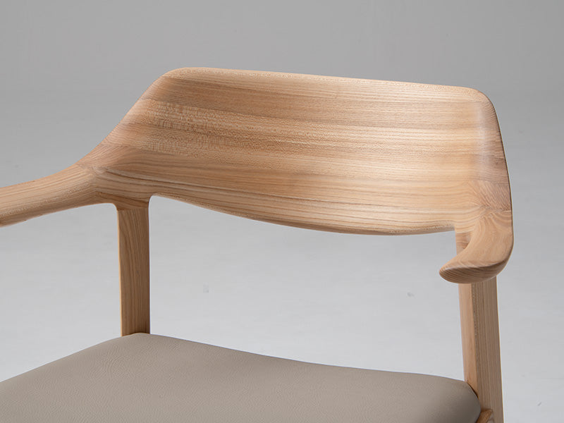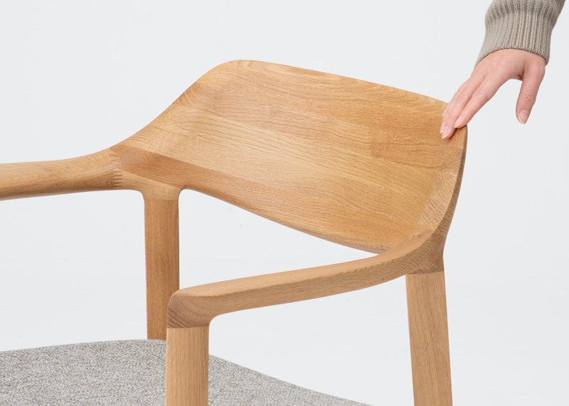 木質感あふれる上質な印象の背は、高度な成型技術により、最小限の材料で無垢の質感と量感を実現。木背でありながら、体が包み込まれるような掛け心地です。