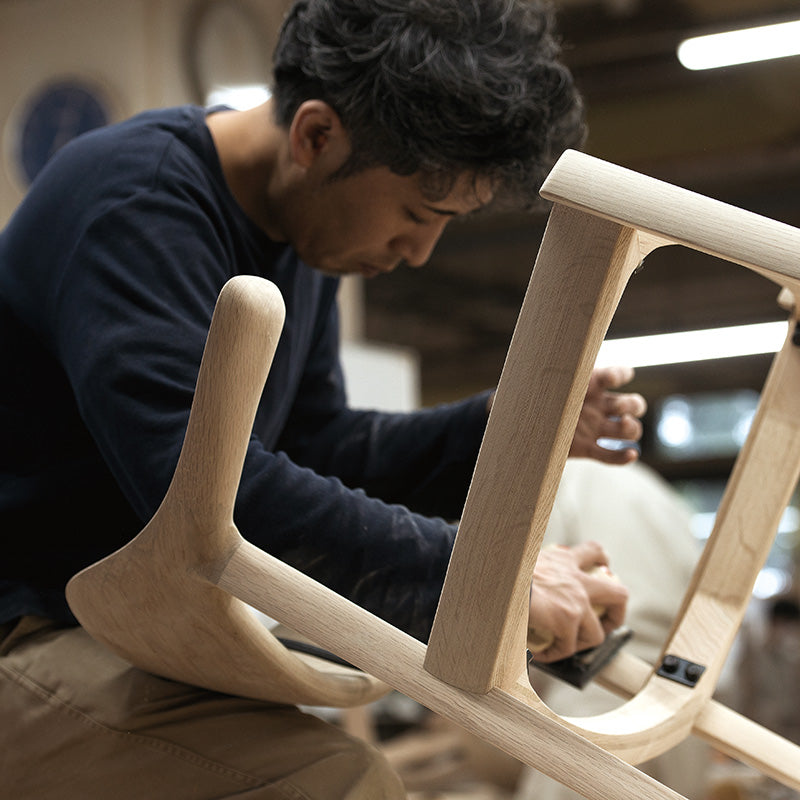 どこを触っても滑らかな面形状や、背と脚の接合部など、ディテールには職人の感性と技が表れています。