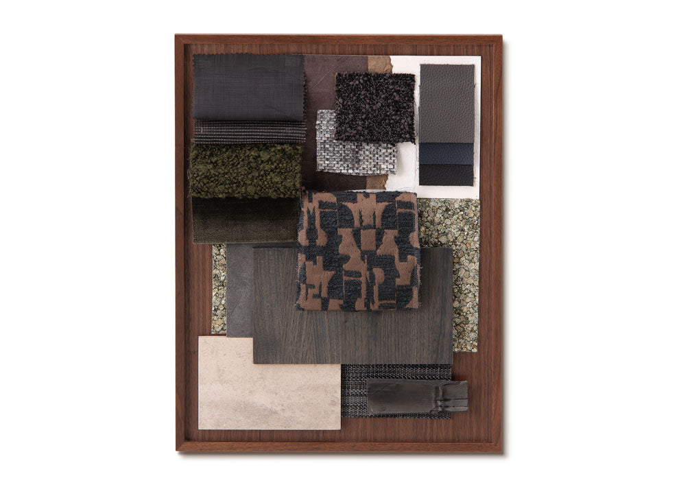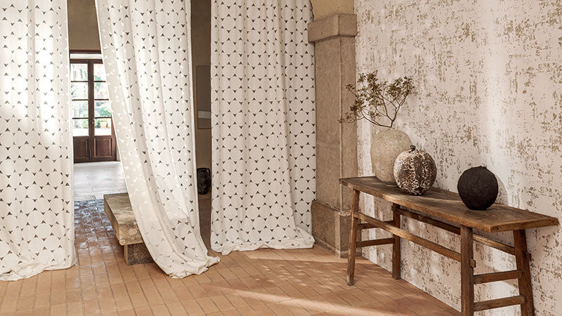 1930年代のミラノの壁装タイルからインスピレーションを受けたジオメトリック柄の張地。ランダムな消炭色に赤みのあるブラウンが加わることで、落ち着いた雰囲気の中に華やかさがプラスされます。