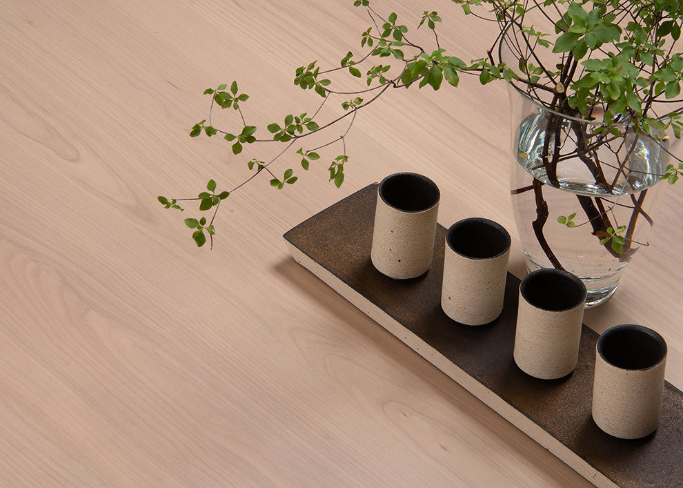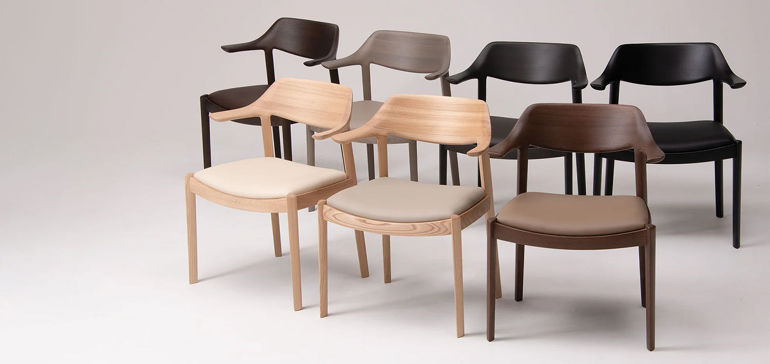 自然志向が高まった70年代の日本を象徴する色のひとつである生成り色。サクラの特長である赤みを帯びた材に塗装することで、上品さとあたたかみを感じる、カンディハウス独自の生成り色が完成しました。緻密でなめらかな木肌や控えめな木目の表情が、無地の張地だけでなく柄物にも上手く溶け込み、さまざまなインテリアに合わせやすい色です。