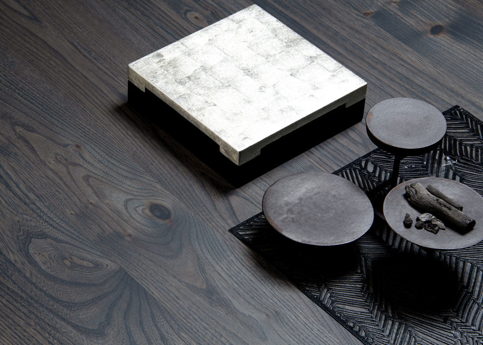 火を消した後の木炭のような、やや明るさの残る柔らかな黒。シンプルな中にも豊かな深みや美しさがある、日本特有の侘び寂びが感じられる色です。木目に動きのあるニレに採用することで、ランダムで表情豊かな色合いをお楽しみいただけます。