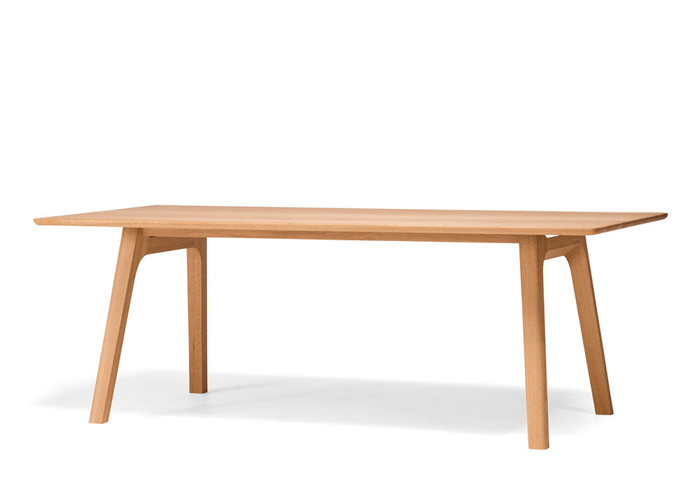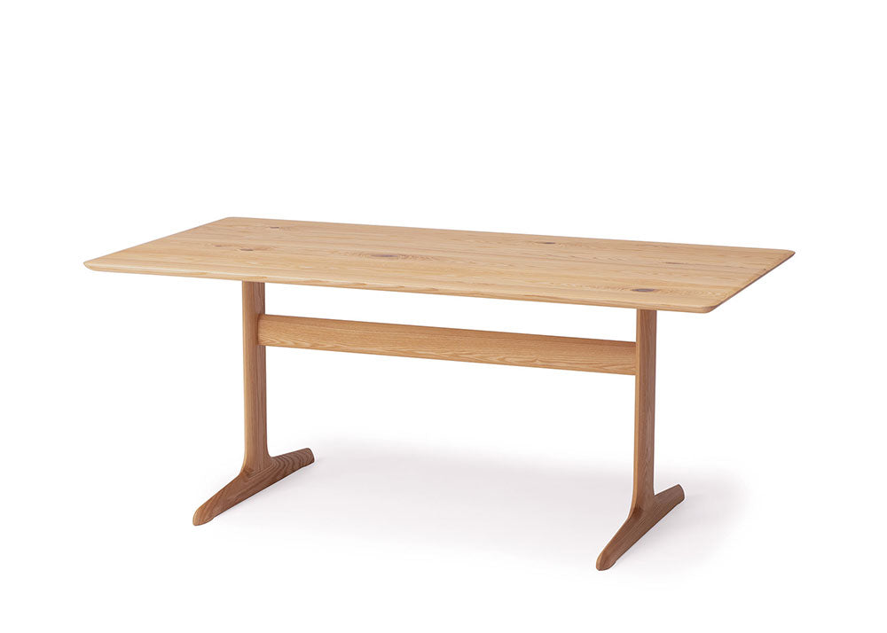 発売10周年を迎えた、豊富なサイズ展開と伸長式タイプから選べる無垢テーブル。天板の薄さや縁、脚の形状にこだわり、節や木目といった木の個性を生かしながら、重厚になりがちな無垢材を軽快なデザインに仕上げています。メンテナンスを重ねて長く使えるオイル仕上げも選択可能です。