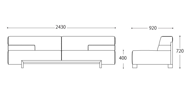 巾2430 奥920 高720 座高400 肘高515(mm)