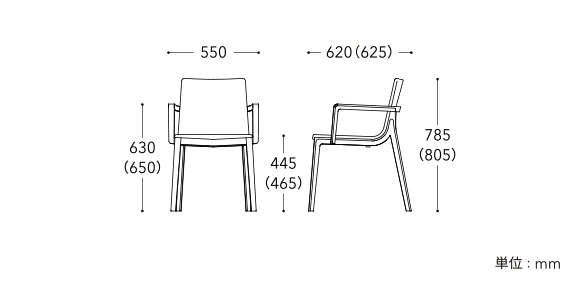座高445mm(H:465mm) 肘高630mm(H:650mm) 重6.5kg
