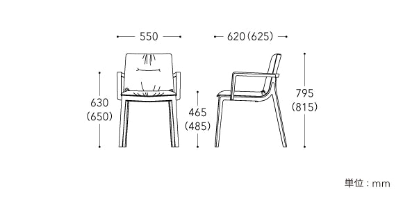 座高465mm(H:485mm) 肘高630mm(H:650mm) 重6.5kg