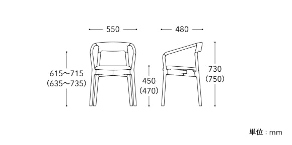 フィンランド語でトンボを表すKORENTO(コレント)は、デザイナーのミッコ・ハロネン氏が椅子を正面から見た時、トンボの顔を連想したことから名付けられました。ゆったりとした見た目ながら幅550mmとカンディハウスのアームチェアーのなかではコンパクトなサイズ感。押したり引いたりが軽く、使い勝手が良いと好評です。