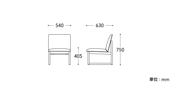ほどよい太さのある水平垂直な木部フレームが、和の落ち着きを感じさせる椅子とテーブル。トネリコの米谷ひろし氏が、建築に溶け込む家具としてデザインしたリビングアイテムです。「座布団のような無造作感(米谷氏)」を表現したクッション部は、モールド発泡ウレタンを併用して腰掛ける人の体をやさしく受け止める仕上がりに。ソファーとは異なるパーソナルなくつろぎが生まれ、ホテルや応接室など長時間過ごす場面にも対応します。