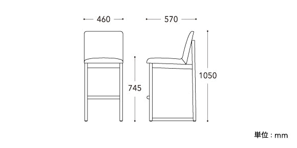 シリーズに共通する水平垂直な木部と対象的にやわらかく丸みのある座面、このバランスが美しい立ち姿を生み出しました。木部と座面の形状的なコントラストは、木部の色と張地によってさまざまな表情が生まれ、幅広い空間に溶け込みます。複数脚並べたときに建築と調和するように、装飾的な要素を削ぎ落としているのが最大の特長です。