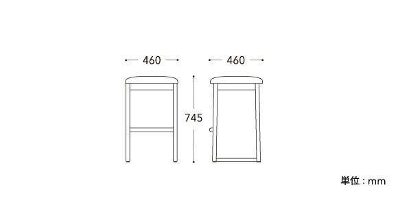シリーズに共通する水平垂直な木部と対象的にやわらかく丸みのある座面、このバランスが美しい立ち姿を生み出しました。木部の装飾やパーツを最小限まで削ぎ落としたシンプルな佇まいで、複数脚並べたときに建築と調和し、幅広い空間に溶け込みます。