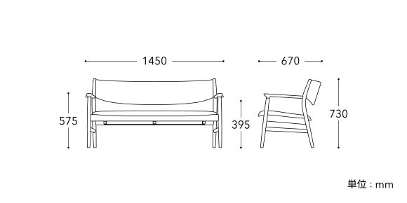 イージーチェアーのデザインを受け継いだ2人掛け。低い位置でゆったりくつろげる安楽椅子の〝いちばんいい角度〟とやわらかさを背と座で追求しています。普遍的なデザインと幅1450mmのサイズ感で、リビングや書斎、寝室など暮らしのさまざまなシーンにやさしく溶け込みます。