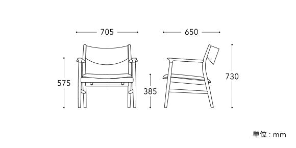 より低い位置でゆったりくつろげるリビング向けの一脚です。安楽椅子の“いちばんいい角度”とやわらかさを背と座で追求。脚はやや太めで、角度を寝かせて全体に安定感を持たせました。アームもエッジを立たせながら手触りはなめらかな、絶妙なバランスです。たっぷりと広くぬくもりある質感の木背タイプ。