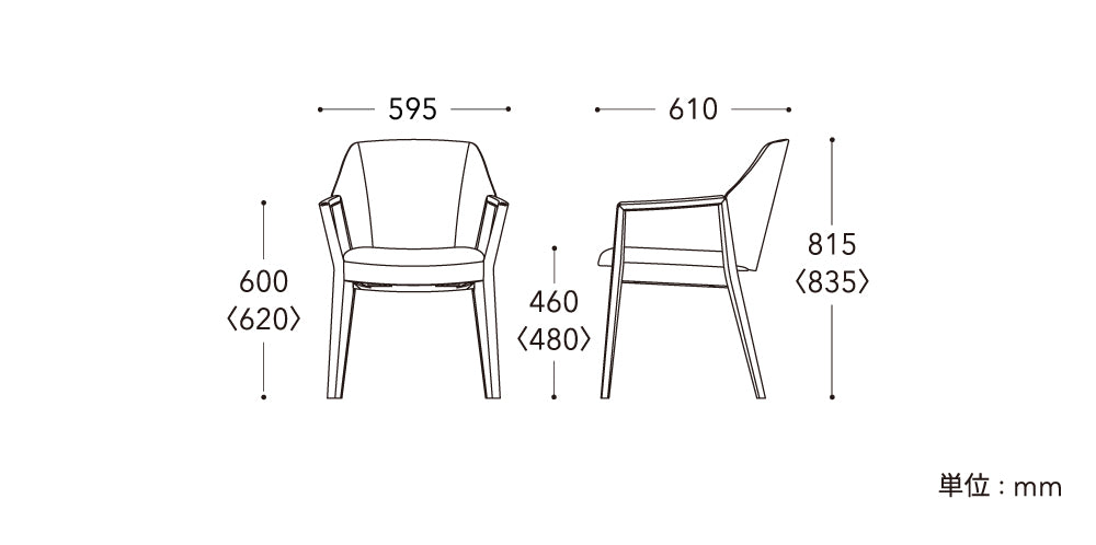 複数脚並べたときに、空間に広がりと優雅さを感じさせるように、木フレームの構造は繊細で、背はデリケートな曲線のシルエットを持たせました。アームチェアーは座り心地の良さを感じさせる見た目でありながらも、エッジの効いたアームのデザインが特長的です。