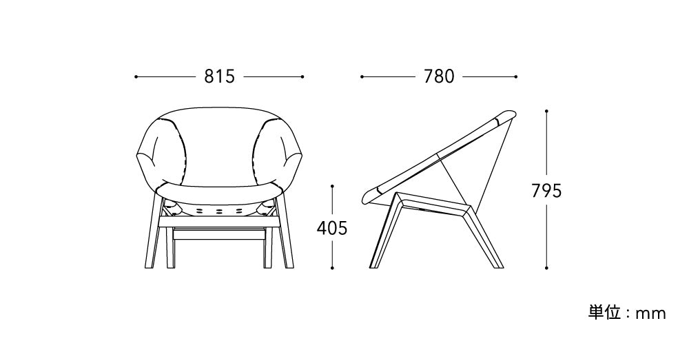 人と会う、じっくり話す、そんな時間をもっと心地よく。座面が広くふくよかで安楽性が高いのに、重さを感じさせないデザインが特長です。アームのない軽やかな姿ながら、楽に肘が置けて体勢を崩せる自由度も魅力。「どう座っても人がかっこよく見える」というデザイナーの言葉にも自信がうかがえます。サイドテーブルと組み合わせて、ホテルのラウンジやビジネスシーンに。リビングではソファーの対面に置いてもバランスのよいボリューム感です。