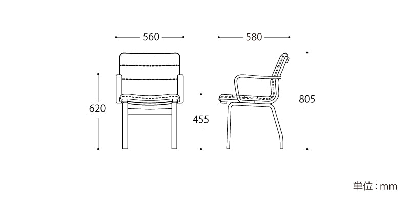 座から背にかけてボリュームを抑えたクッションを張り込み、安楽性を高めています。腰を支えながらやや後傾した背、座面のゆるやかなカーブといった、人の体を受け止める微妙な形状が腰掛けた人の姿を美しく見せてくれます。