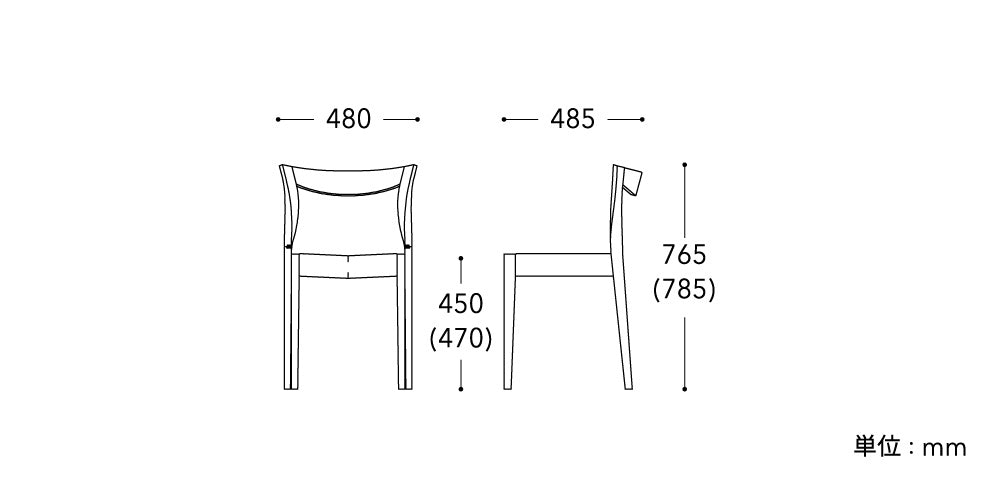 巾480 奥485 高765(H:785) 座高450(H:470)(mm) 重4.5kg