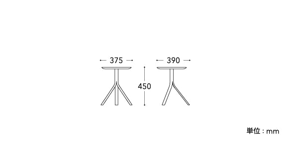 支柱が3本に裂けて脚になっているテーブル。繊細な印象のまま、十分な強度を確保しています。身軽なサイズで、ソファー横やデスク脇など多様なシーンで活躍。テーブルトップは、お皿のようにややエッジをもうけてクラフト感を漂わせました。大小組み合わせたり、色違いで並べても。
