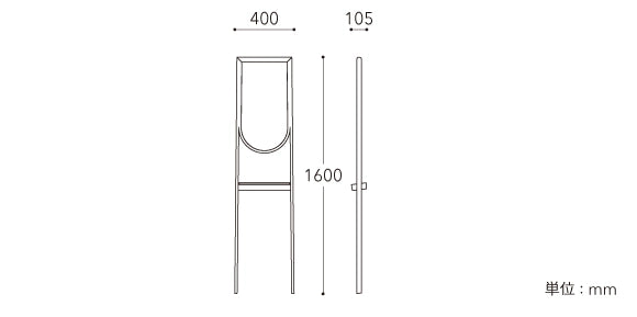 どこにでも持ち運び、立て掛けて使える身軽なミラー。フレームが分岐し、脚はスリムな半円柱に。