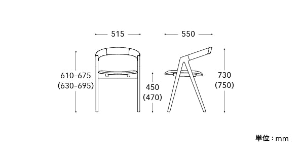 A字に伸びた長い脚と背は、3本の線で描いたスケッチからの発想。腰掛けたとき、張り仕様の背からアームへ心地よく体をもたせかけられ、オフィスやカフェ、長時間過ごす個人宅のダイニングなどでも身軽に活躍します。北海道カバのさらりとした手触りが心地よく、革張りではクラフト感のあるステッチワークが知的なアクセントに。