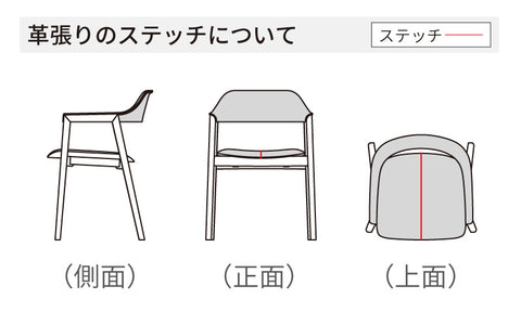 直線的に伸びる脚部が全体にシャープな印象を与えています。アームの触れる部分は滑らかに削り、背から肘の体を包み込むラインに合わせごく僅かな曲線を描いています。背・座・肘と体に触れる箇所のソフトなラインは、腰掛けた際の心地よさにつながっています。