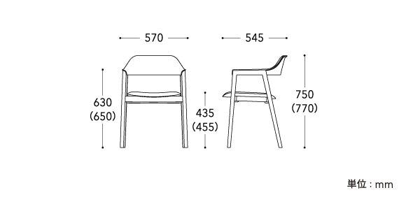 座高435mm(H:455mm) 肘高630mm(H:650mm) 重6.5kg